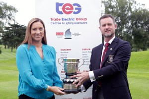 Eimear Costelloe of Trade Electric Group and Derek Sheahan, Men’s Club Captain, Castletroy Golf Club officially launch of the 2023 Castletroy Senior Scratch Cup kindly sponsored by Trade Electric Group.