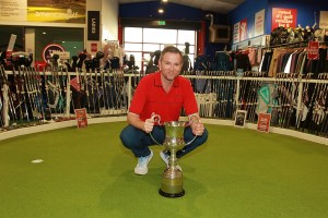 Ronan Twomey pictured with the Muskerry Scratch Cup at American Golf in Wilton. Twomey won the Brewin Dolphin sponsored event after a play-off. Picture: Niall O’Shea